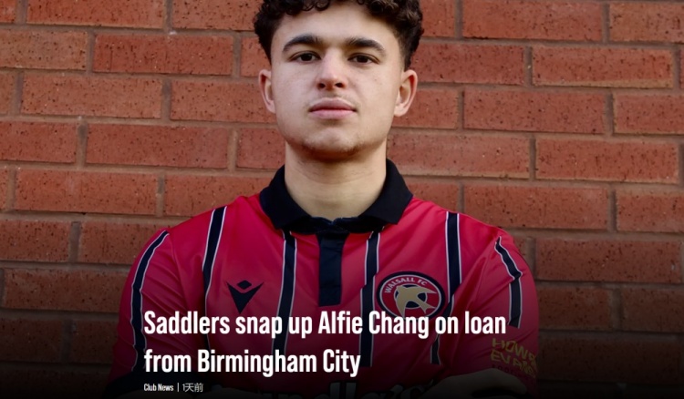 英乙領(lǐng)頭羊沃爾索爾官宣,球隊(duì)從伯明翰租借22歲華裔中場(chǎng)阿爾菲-張,租期至本賽季結(jié)束。