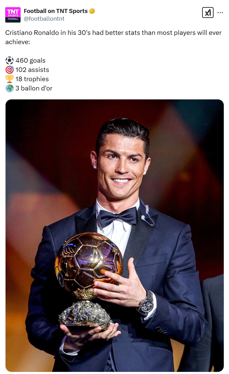 外媒TNT:C羅30歲后達(dá)成的這些數(shù)據(jù),可以超越大多數(shù)球員整個生涯↓??460顆進(jìn)球????102次助攻????18座獎杯????3座金球獎 標(biāo)簽: 足球 C羅 利雅得勝利