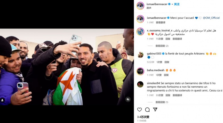 本納塞爾受到了馬賽球迷們的熱烈歡迎,他也通過社媒曬出動態(tài)并表示:“感謝你們的歡迎。@馬賽俱樂部”