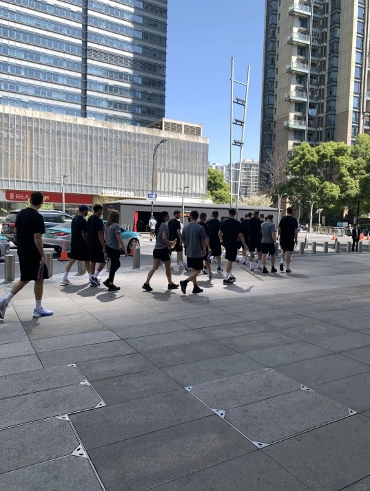 3月25日訊 有網友在社交媒體曬照,澳大利亞隊今天早上在萬象城citywalk。