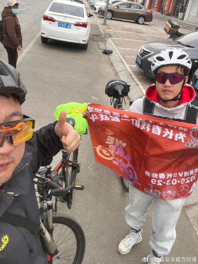 3月25日訊 根據(jù)亞泰俱樂(lè)部官方的消息,兩名亞泰球迷用長(zhǎng)春騎行到大連的方式,前往大連客場(chǎng)為亞泰助威。