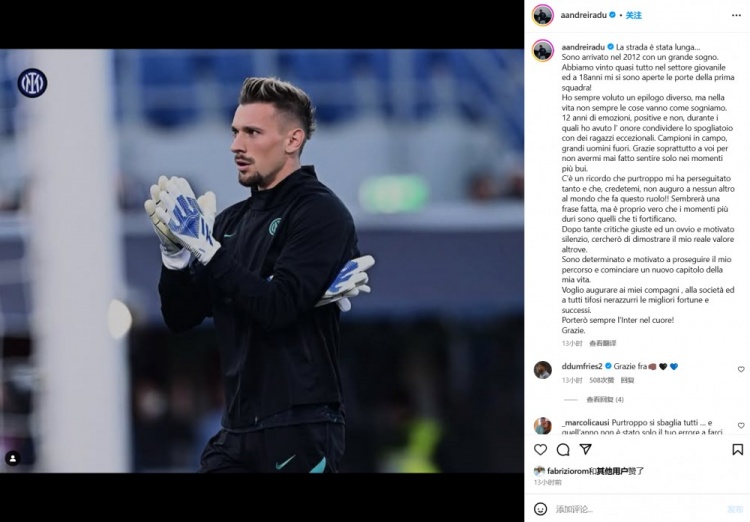 拉杜寫(xiě)道:“這是一段很長(zhǎng)的道路。2012年,我懷揣偉大的夢(mèng)想來(lái)到了國(guó)米,我們幾乎贏得了青年賽事的所有冠軍。18歲的時(shí)候,一線隊(duì)的大門(mén)向我敞開(kāi)。我一直想要一個(gè)不同的結(jié)局,但生活并不總是按照我們的想法進(jìn)行?!?/p>
