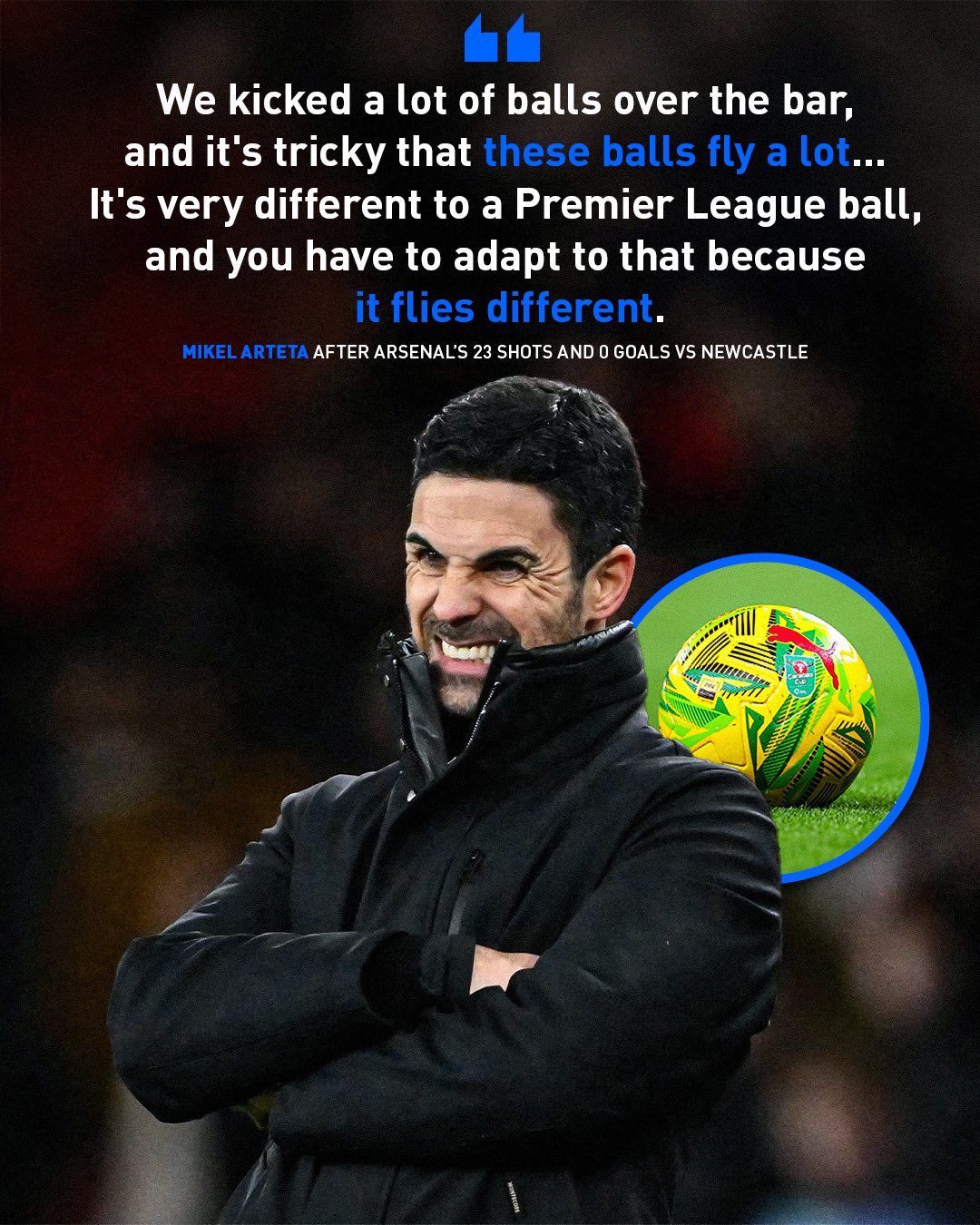 在首回合阿森納主場(chǎng)0-2不敵紐卡的賽后,阿爾特塔談到了比賽用球,表示聯(lián)賽杯用球與英超用球非常不同,必須要適應(yīng)?!?/u>