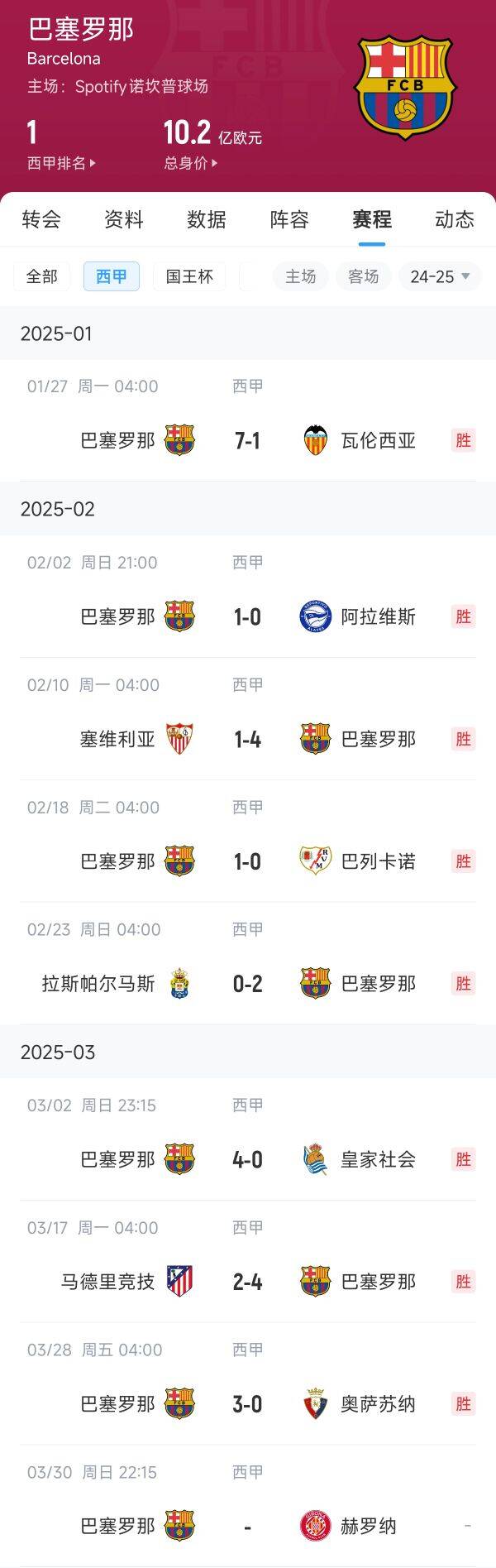 2025年03月28日 西甲第27輪補賽 巴塞羅那vs奧薩蘇納 全場錄像