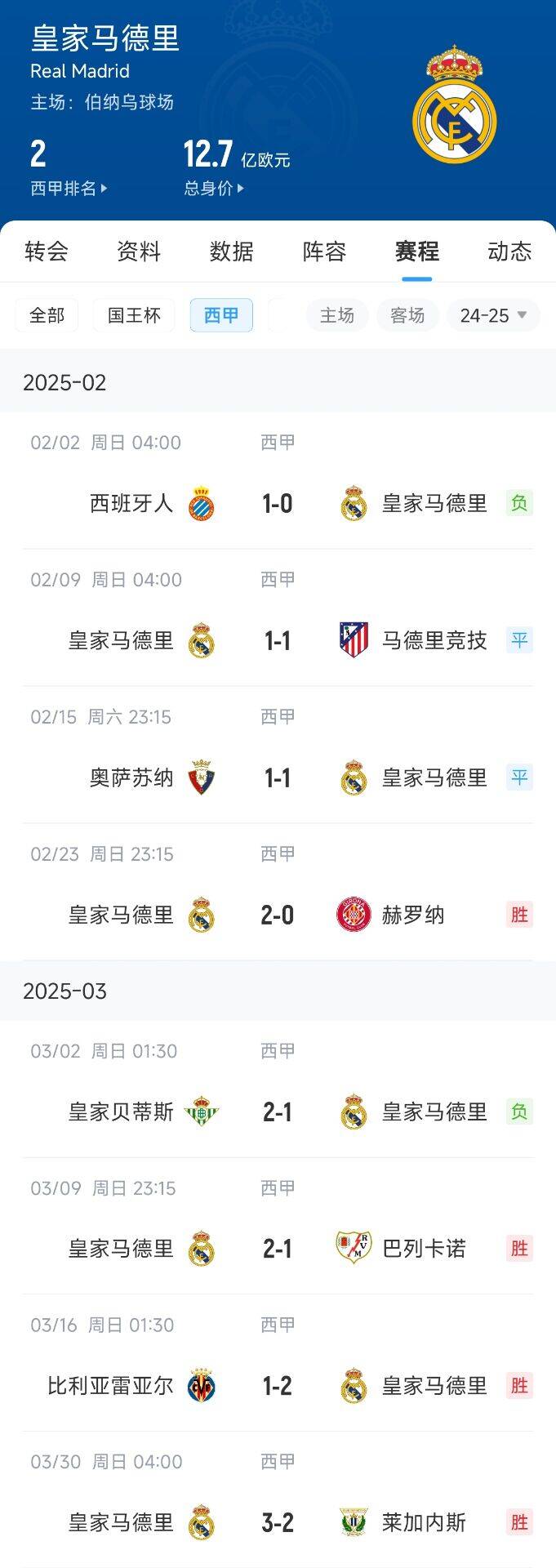 西甲爭冠沖刺階段三強的狀態(tài)一覽:
