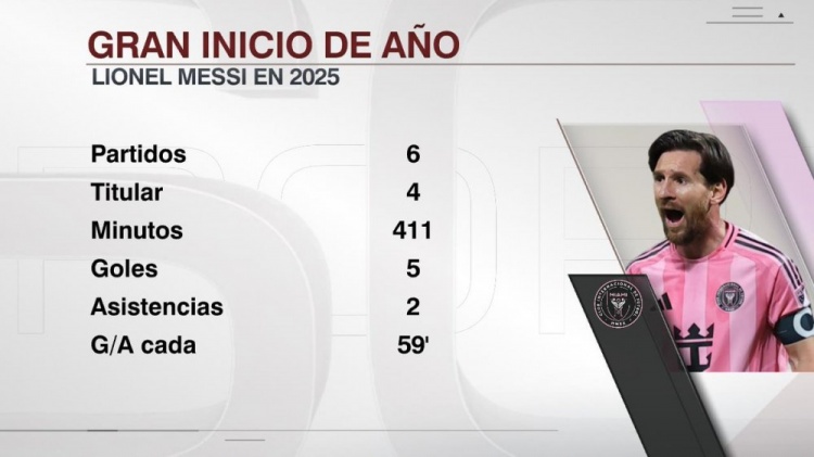 據(jù)ESPN統(tǒng)計(jì),梅西今年出戰(zhàn)6場(chǎng)比賽,其中4場(chǎng)首發(fā),出場(chǎng)時(shí)間411分鐘,打進(jìn)5球助攻2次,平均每59分鐘參與1球。