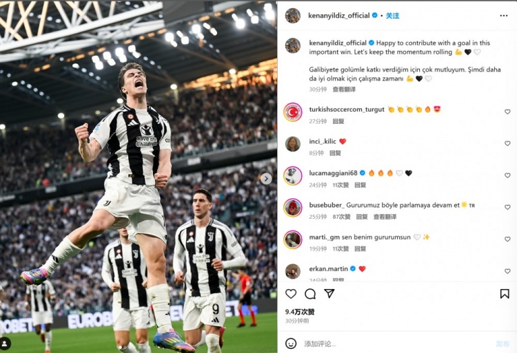 伊爾迪茲通過社媒曬出自己的慶祝照,并配文:“很高興能用進球為這場重要的勝利做出貢獻!讓我們繼續(xù)當前的勢頭。”