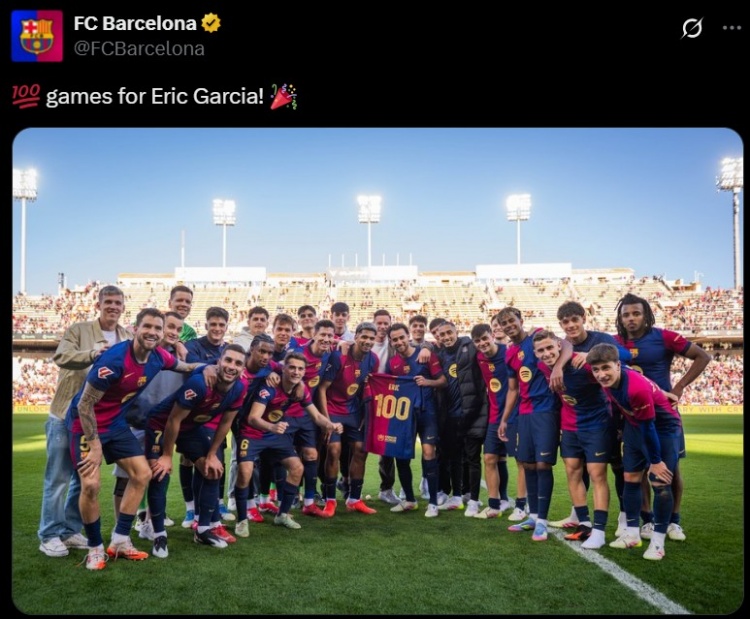 3月31日訊 在本輪西甲,巴薩4-1大勝赫羅納。本場比賽埃里克-加西亞首發(fā)登場,這是他加盟巴薩以來各項賽事第100次出場,賽后他也獲贈球隊100號定制球衣,并與全隊球員合影留念。 標簽: 足球 西甲 巴塞羅那