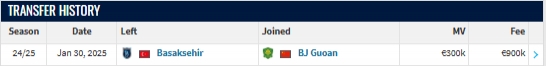 02月06日訊 德轉(zhuǎn)官方數(shù)據(jù)顯示,吳少聰轉(zhuǎn)會(huì)北京國(guó)安的轉(zhuǎn)會(huì)費(fèi)為90萬(wàn)歐,約合680萬(wàn)元人民幣。