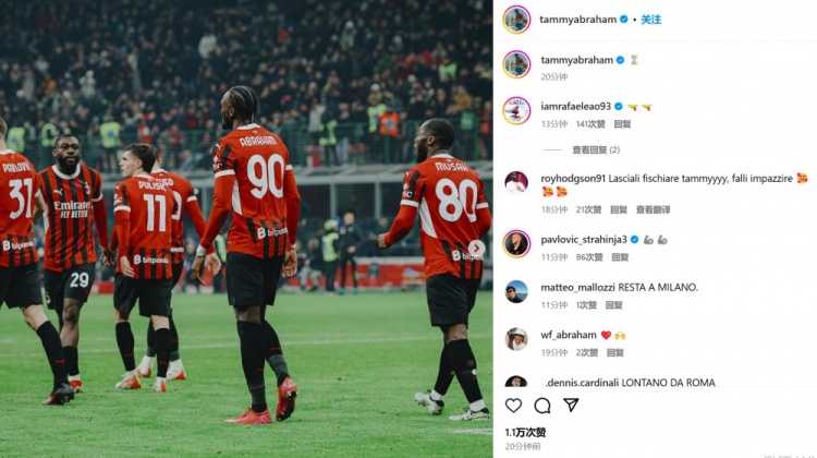 亞伯拉罕在進(jìn)球后并未進(jìn)行慶祝,他也在賽后通過(guò)社媒曬出自己的比賽照并附上?表情。數(shù)據(jù)統(tǒng)計(jì)顯示,27歲的亞伯拉罕本賽季各項(xiàng)賽事為米蘭29場(chǎng)貢獻(xiàn)8球5助攻。