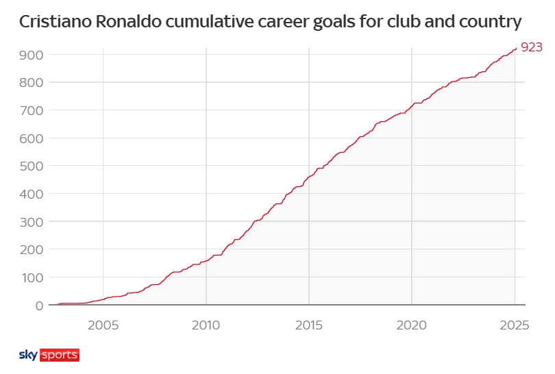 目前C羅職業(yè)生涯已經(jīng)打進了923粒進球,其中俱樂部層面打進788球,代表皇馬轟450球最多,國家隊層面攻入135球。