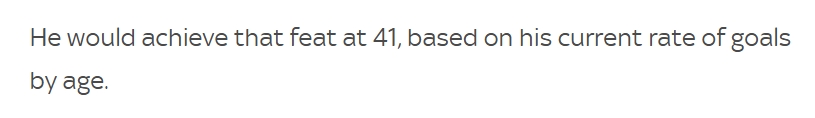 天空體育按照C羅目前的進球效率和年齡計算,得出結(jié)論:C羅有望在41歲時達成職業(yè)生涯1000球的成就!