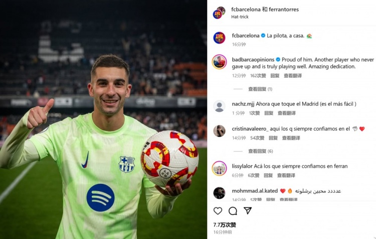 他也在賽后通過社媒曬出自己手持比賽用球的照片,并未附加文字內(nèi)容。而巴薩俱樂部官方賬號(hào)則現(xiàn)身評(píng)論區(qū):“帶球回家?!?/p>