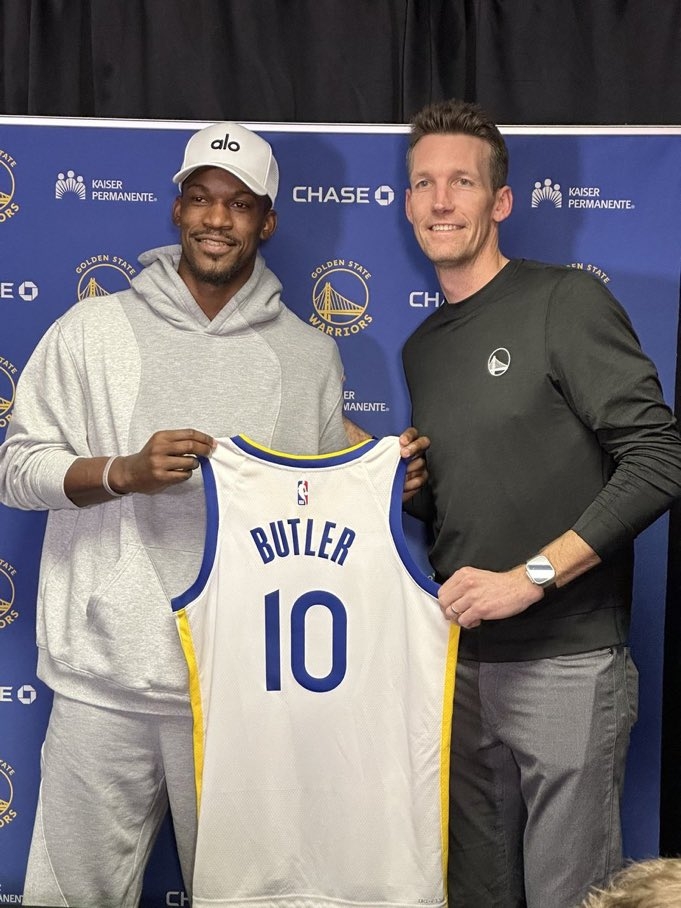 NBA勇士隊為新援巴特勒舉辦新聞發(fā)布會,巴特勒在發(fā)布會上拿到了自己的勇士10號球衣,鄧?yán)S表示這是他新秀賽季效力勇士時所穿的球衣號碼,而巴特勒透露,他選擇10號球衣是為了致敬好友內(nèi)馬爾。