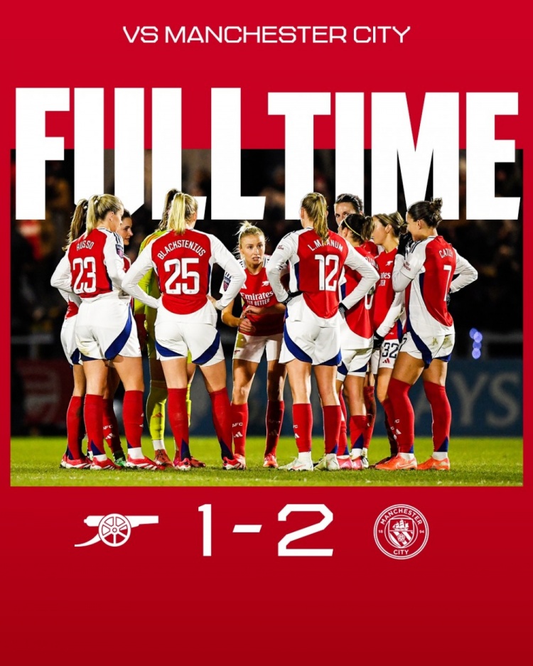 此役瑪麗-福勒為曼城女足先拔頭籌,下半場卡爾登泰點射扳平,第95分鐘瑪麗-福勒攻入絕殺進(jìn)球,最終阿森納女足1-2落敗于曼城女足。
