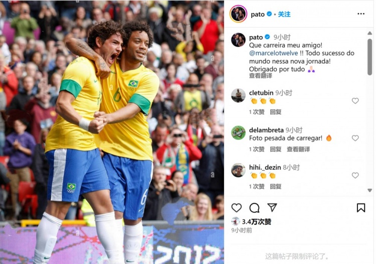 2月7日訊 巴西傳奇球星馬塞洛宣布退役,其昔日巴西國家隊(duì)隊(duì)友帕托也在社媒曬出合影為其送上祝福。帕托在社媒配文寫道:“多么精彩的職業(yè)生涯!祝你人生新的篇章一切順利,感謝你所做的一切!” 標(biāo)簽: 足球 西甲 五洲 巴甲