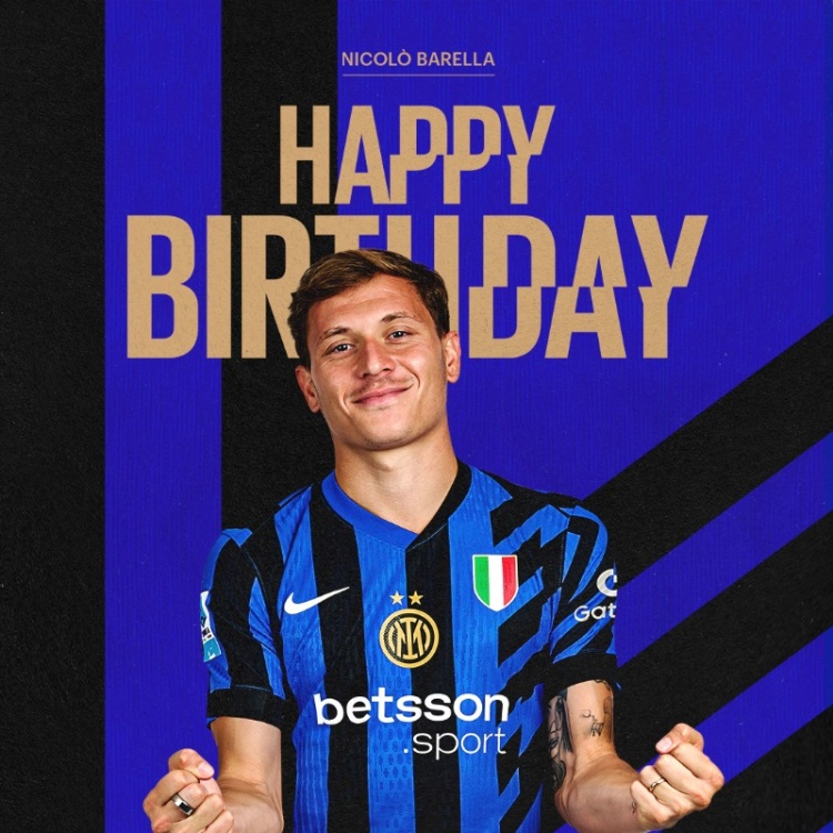 國米官方社媒曬出為巴雷拉制作的生日海報,配文:“生日快樂,巴雷拉!”