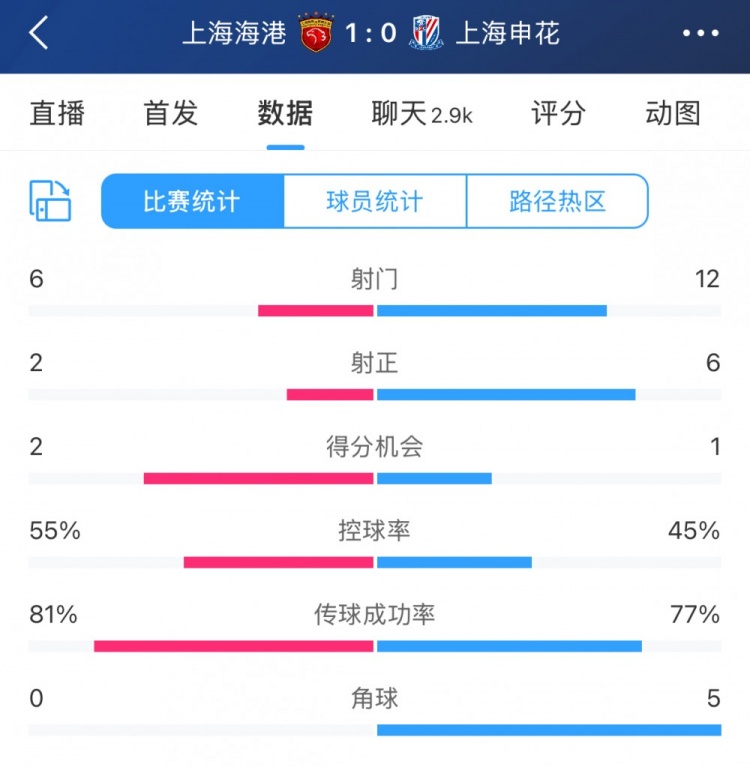 2月7日訊 2025中國超級杯賽,上海海港憑借新外援加布里埃爾的破門,在上半場1-0領(lǐng)先申花。半場數(shù)據(jù)方面,落后的申花更有優(yōu)勢,但海港把握機會的能力更強。