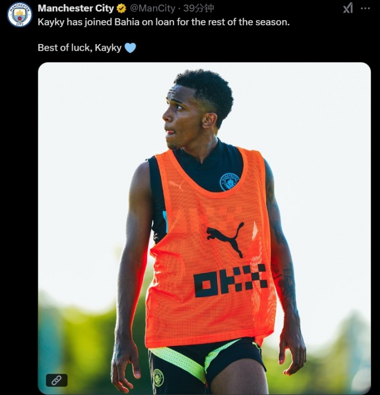 2月8日訊 曼城官方宣布,小將凱基外租巴西俱樂(lè)部巴伊亞半個(gè)賽季。