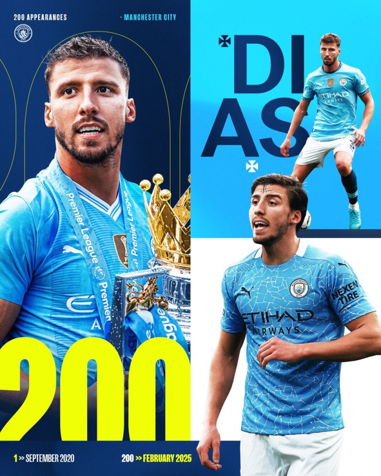 曼城公布了此役的首發(fā)名單,魯本-迪亞斯在列。此役是魯本-迪亞斯為曼城出戰(zhàn)的第200場(chǎng)比賽,曼城官方社媒曬出海報(bào),祝賀他達(dá)成這一里程碑。