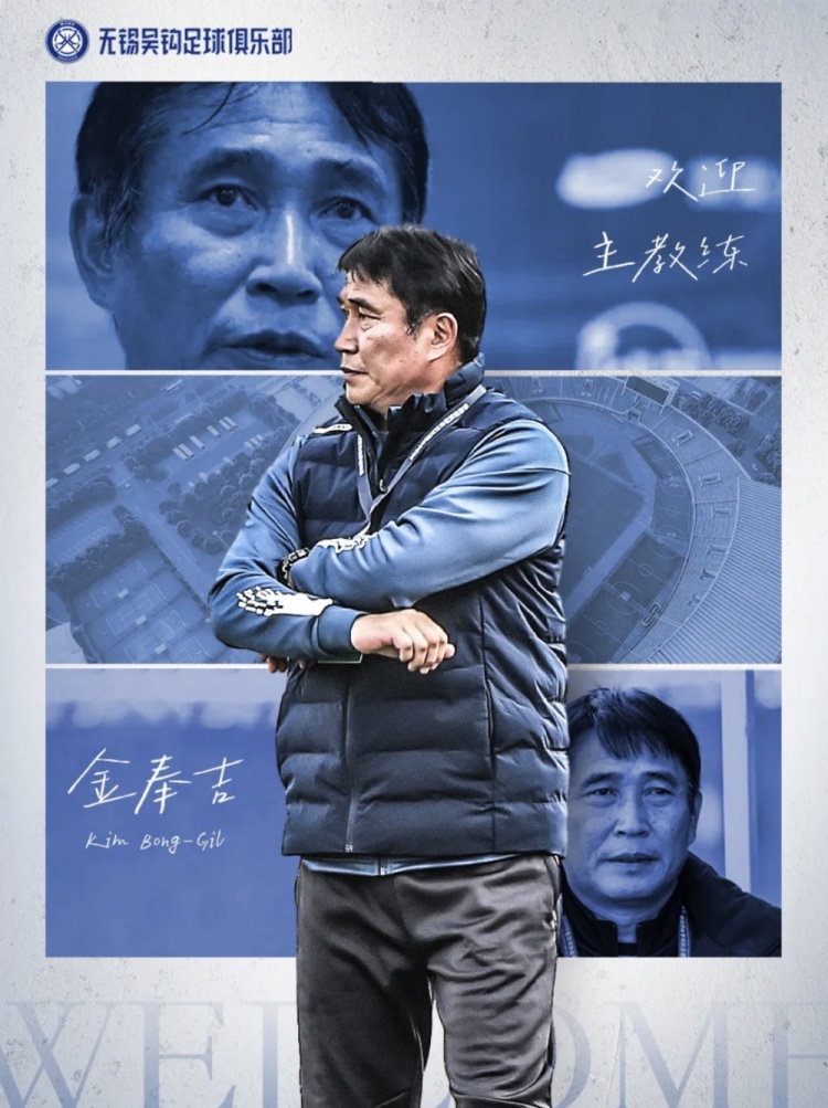 經(jīng)與本人友好協(xié)商一致,即日起,韓國籍教練金奉吉先生出任無錫吳鉤足球俱樂部一線隊主教練。
