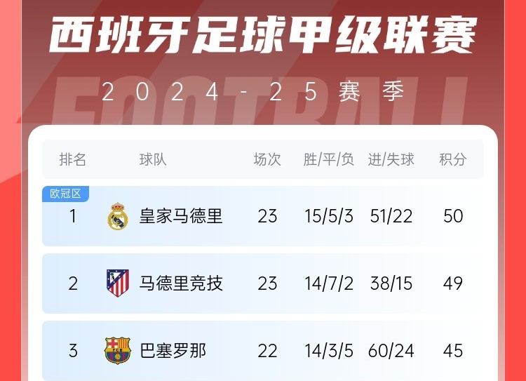 02月09日訊 西甲第23輪馬德里德比戰(zhàn)成1-1,這使得榜首三隊的爭冠形勢更具懸念。