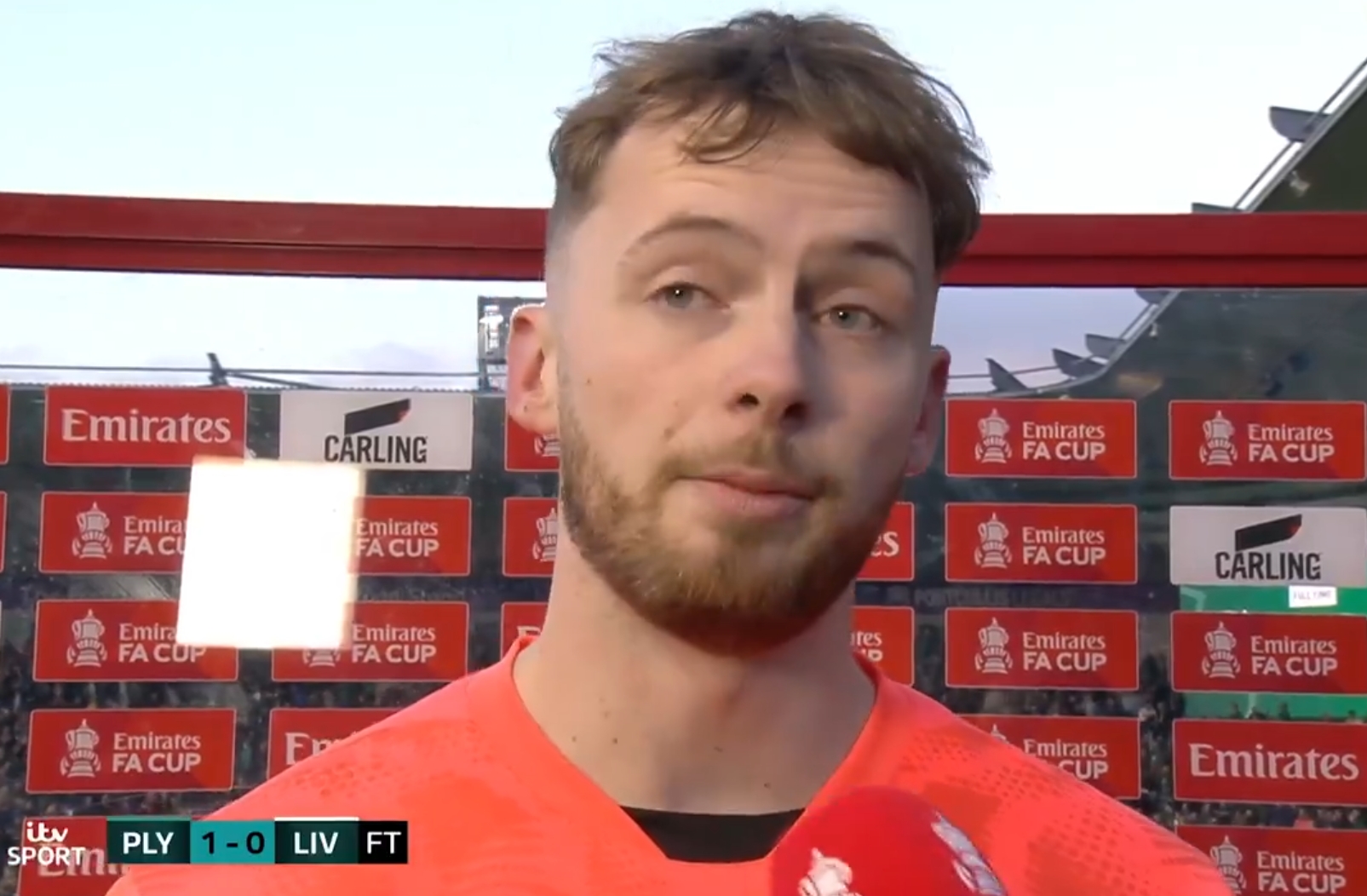 2月10日訊 利物浦0-1普利茅斯止步足總杯32強,普利茅斯門將康納-阿扎爾接受英國獨立電視臺采訪。