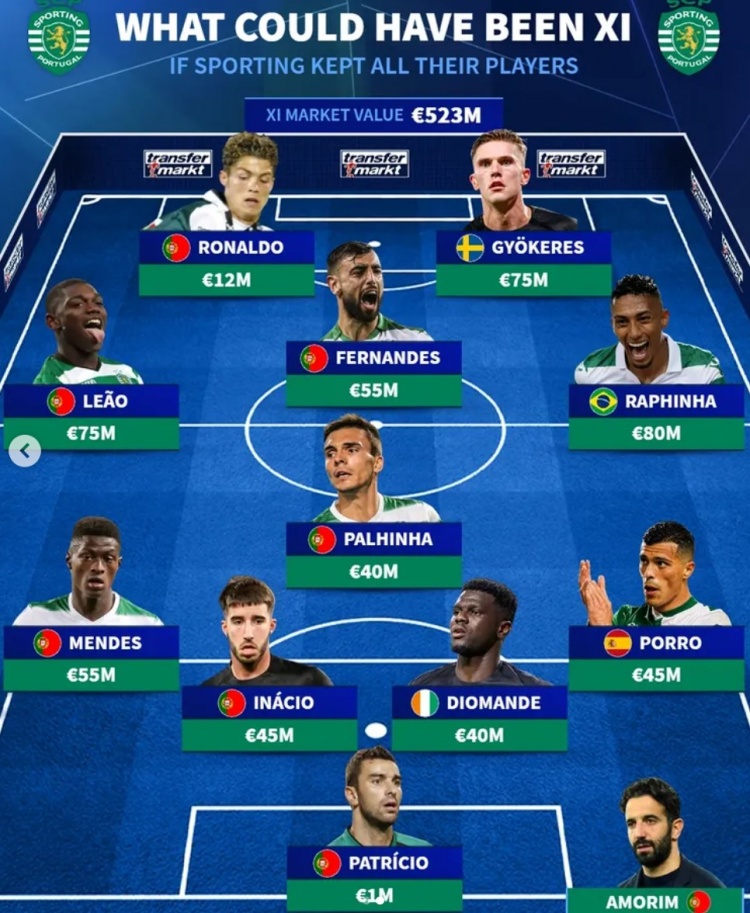 德轉(zhuǎn)列葡體履歷當(dāng)前最強(qiáng)陣:總身價(jià)5.23億歐元