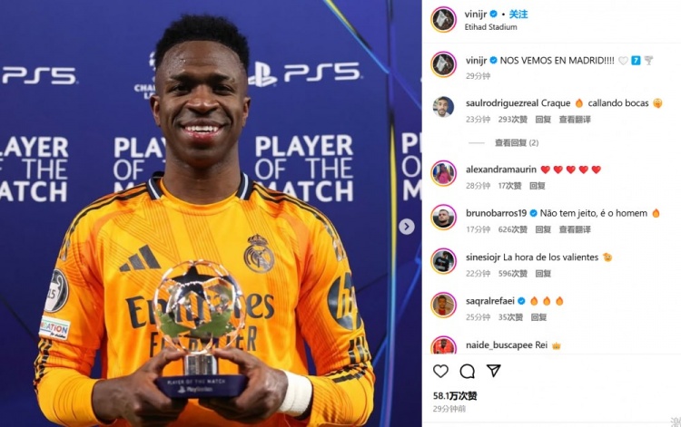 用表現(xiàn)回?fù)舫爸S!維尼修斯社媒曬全場(chǎng)最佳獎(jiǎng)杯:馬德里再見(jiàn)!