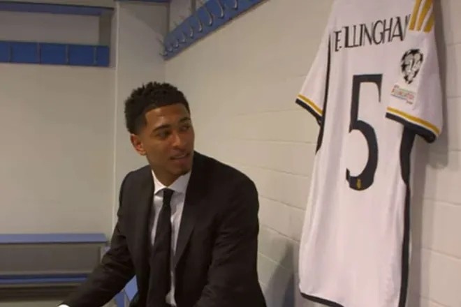 2023年夏天,貝林厄姆加盟皇馬,穿上了偶像齊達內在皇馬穿過的五號球衣。那一天,接受采訪的貝林厄姆非常激動地說,齊達內是他的偶像,能夠在皇馬和偶像穿同樣號碼的球衣,他非常感動,希望自己能夠成為皇馬新五號。