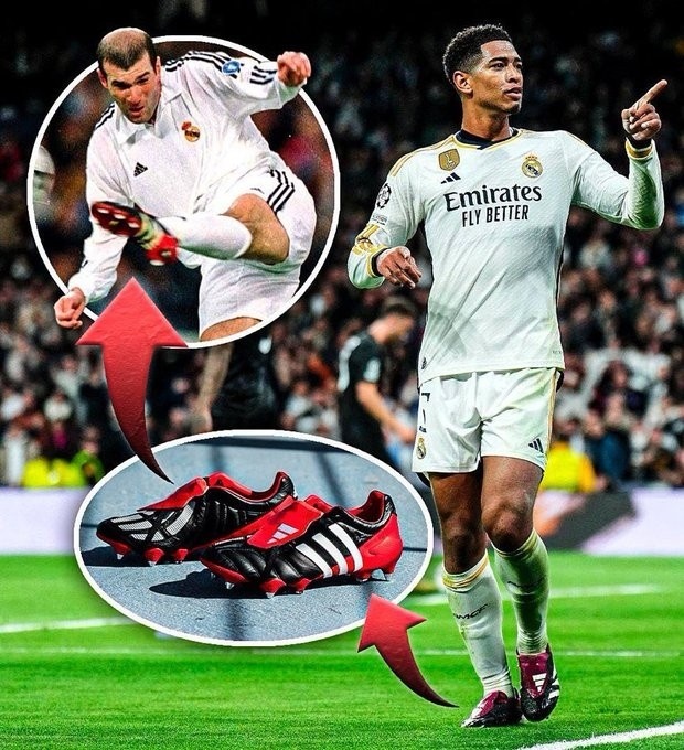 當場比賽,貝林厄姆頭球破門時,球迷們第一時間聯想到了1998年世界杯決賽上的齊達內。