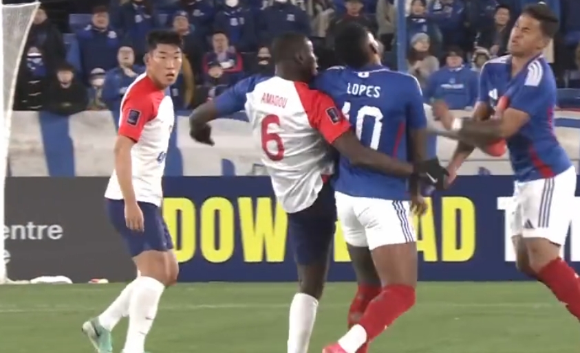 02月12日訊 亞冠精英聯(lián)賽東亞區(qū)第7輪,上海申花客場(chǎng)對(duì)陣橫濱水手。比賽第28分鐘,阿馬杜在爭(zhēng)搶過(guò)程中抬腳過(guò)高,鞋釘?shù)诺今R特烏斯胸部,裁判對(duì)他出示黃牌。