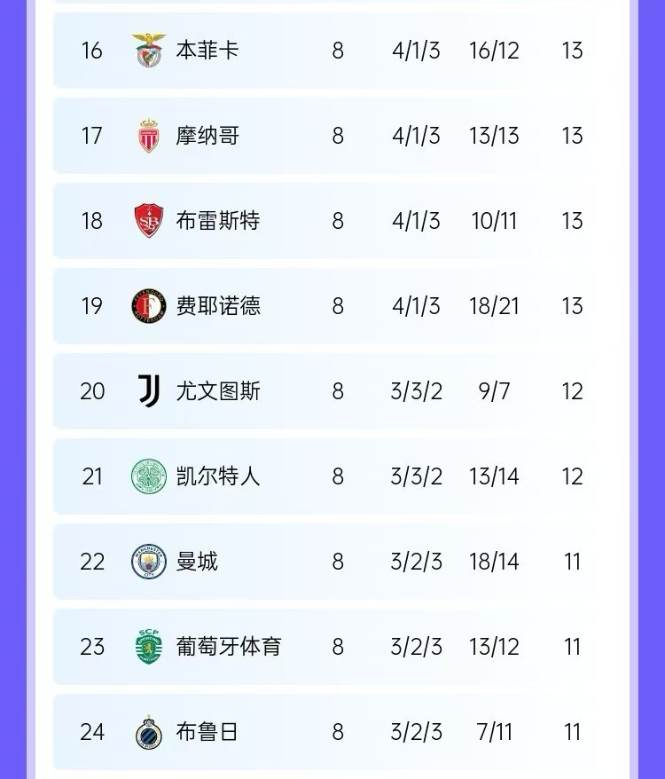 阿莫林帶領(lǐng)的葡萄牙體育在歐冠前4輪3勝1平,一度高居歐冠第2位。但是阿莫林離隊(duì)加盟曼聯(lián)之后,葡體小組賽4輪不勝跌至第23名,在淘汰賽附加賽首回合主場(chǎng)0-3不敵多特后,已接近被淘汰。