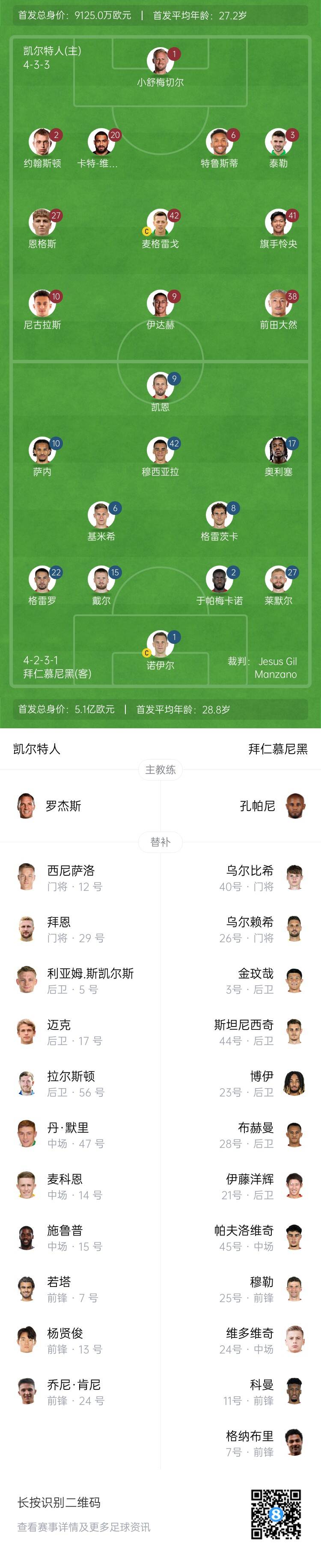 拜仁替補(bǔ):26-烏爾賴希、40-烏爾比希、3-金玟哉、7-格納布里、11-科曼、21-伊藤洋輝、23-博伊、24-維多維奇、25-托馬斯-穆勒、28-布赫曼、44-斯坦尼西奇、45-帕夫洛維奇