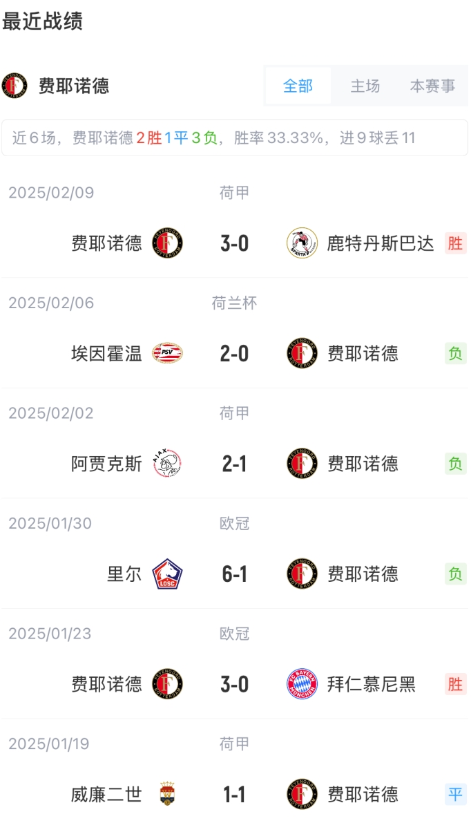 費(fèi)耶諾德首發(fā):22-韋倫羅伊特、26-吉瓦羅-里德、3-托馬斯-比倫、33-漢茨科、5-斯馬爾、7-莫德爾、27-米蘭博、8-昆滕-廷伯、23-哈迪-穆薩、9-上田綺世、14-伊戈?duì)?派修