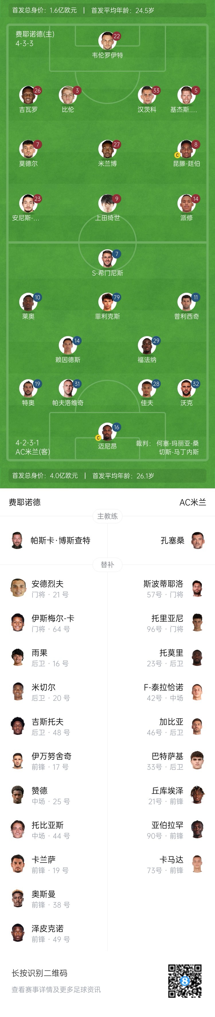2月13日訊 歐冠淘汰賽附加賽首回合,費(fèi)耶諾德主場迎戰(zhàn)米蘭比賽即將打響。賽前首發(fā)出爐。