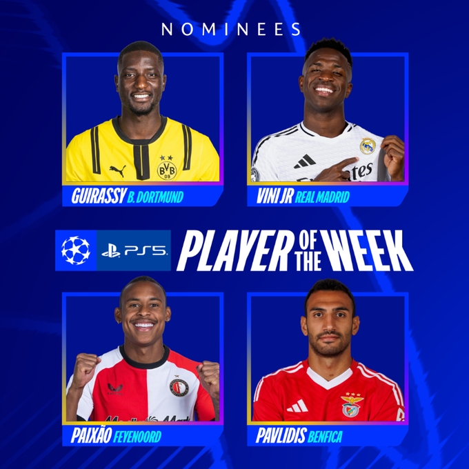 歐冠本周最佳球員候選:吉拉西、派修、帕夫利季斯、維尼修斯入圍