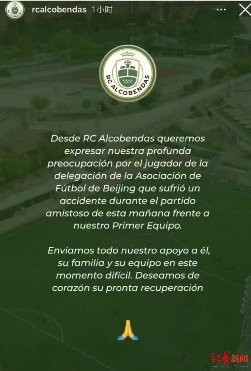 據(jù)郭嘉璇哥哥提供的截圖顯示,比賽對手RC阿爾科文達斯足球俱樂部此前曾在社交媒體上對此事發(fā)聲,表達“嚴肅關切”,但目前該俱樂部社媒已經(jīng)無法找到該聲明。北京時間2月11日,紅星新聞記者曾致電該俱樂部,對方確認有“比賽中球員受傷”事件,但稱對球員后續(xù)的狀況不了解。記者2月12日和13日再度致電時,該俱樂部電話已無人接聽。