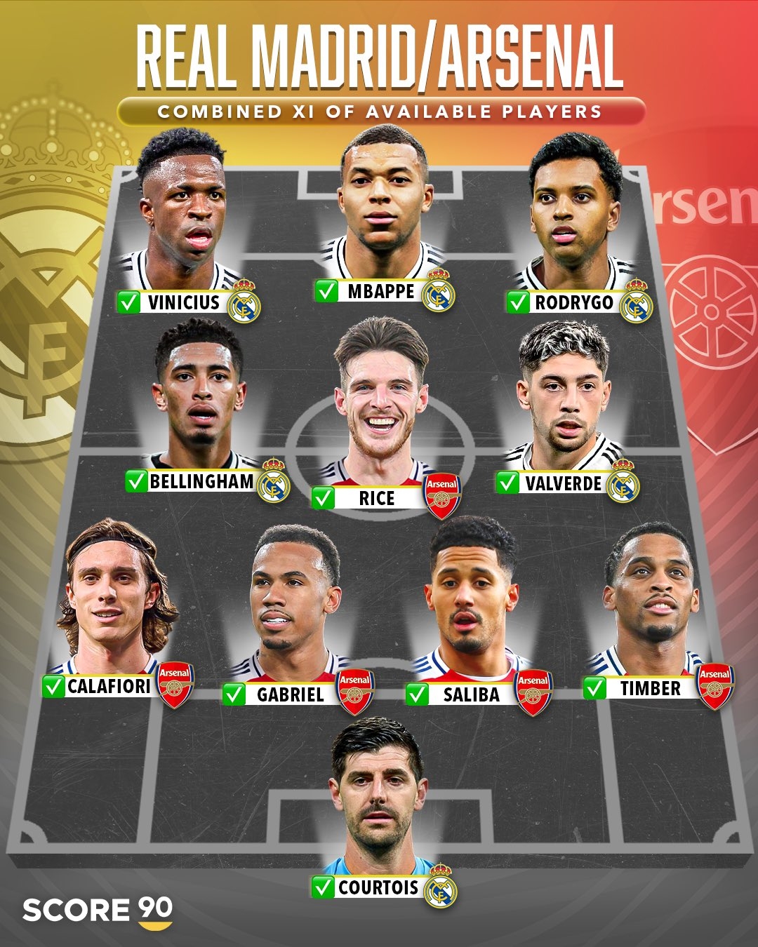 你倆湊一隊?各傷半套陣容,皇馬前場+阿森納后場組隊實力如何?