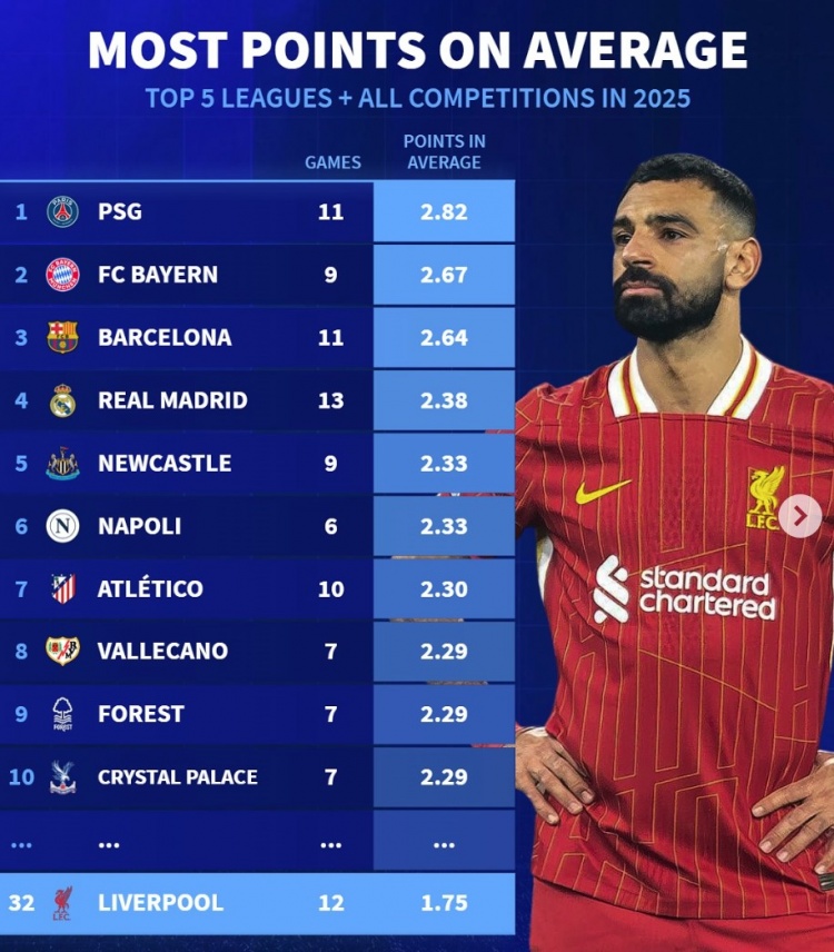 2025五大聯(lián)賽球隊(duì)場(chǎng)均拿分榜: