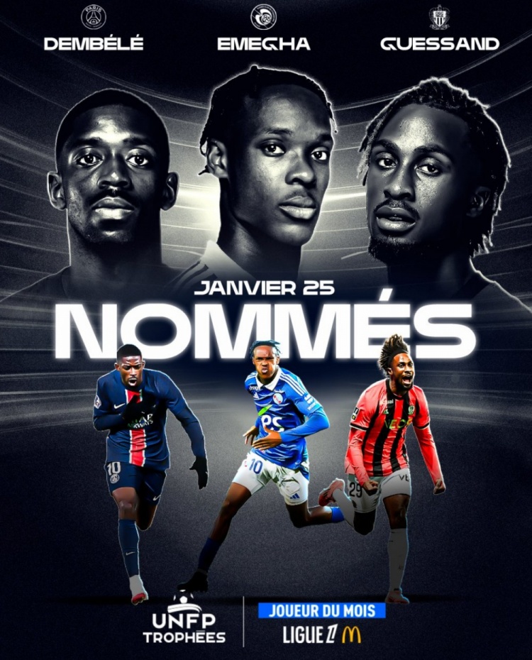 2月2日訊 法甲官方公布了1月最佳球員候選名單,其中,登貝萊領(lǐng)銜,尼斯前鋒古埃桑德、斯特拉斯堡前鋒埃梅加入選。