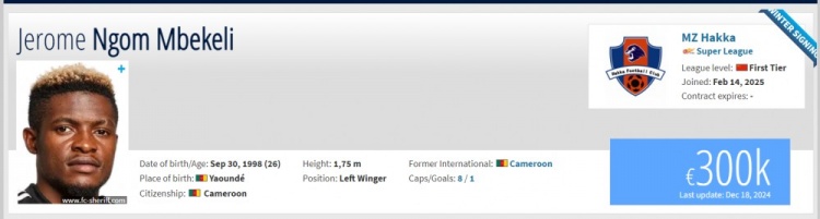 喀麥隆球員熱羅姆·恩戈姆·姆貝凱利(Jerome Ngom Mbekeli)轉(zhuǎn)會梅州客家。恩戈姆今年26歲,司職邊鋒,曾入選喀麥隆國家隊(duì)。此前在摩爾多瓦警長隊(duì)效力,為該隊(duì)出場了42次,打進(jìn)6球。 ???