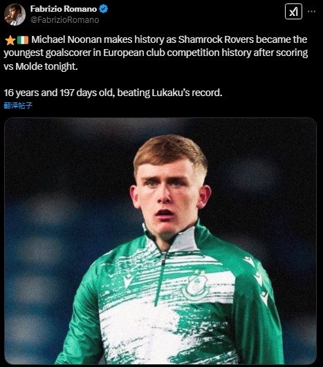 2月14日訊 在今天凌晨進行的歐協(xié)聯(lián)比賽,16歲197天的愛爾蘭小將邁克爾-努南進球,成為歐戰(zhàn)歷史上最年輕的進球球員。