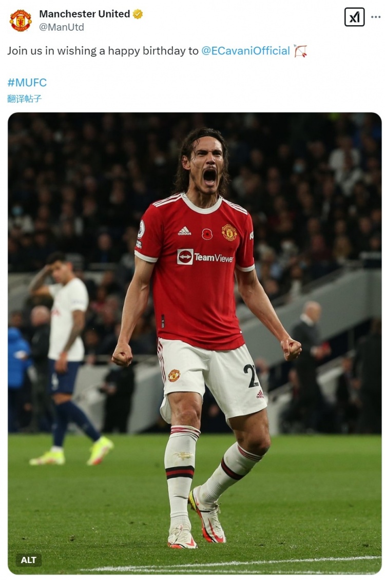 2月14日訊 今天是烏拉圭前鋒卡瓦尼的38歲生日,老東家曼聯(lián)為他送上祝福。