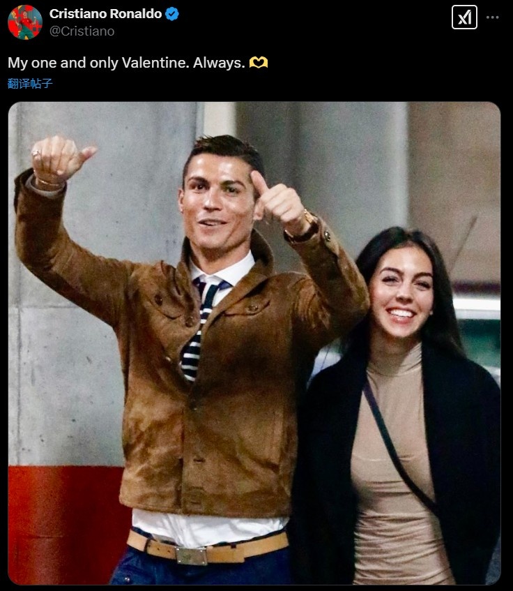 C羅在社媒上曬出了自己與喬治娜的合照,并配文道:我唯一的情人!永遠(yuǎn)都是!