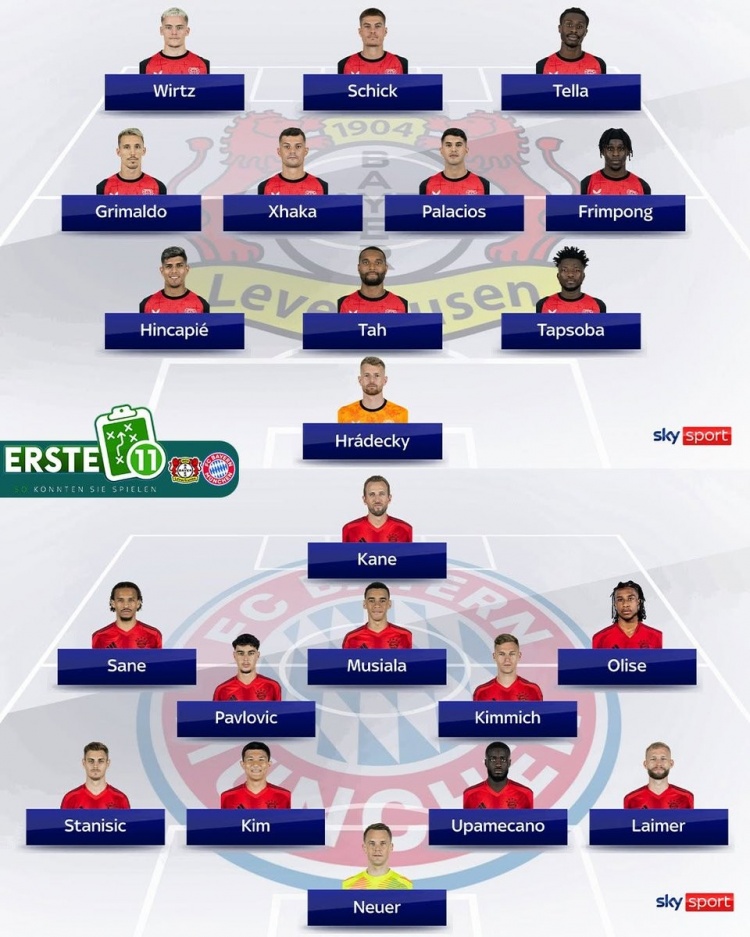 2月15日訊 勒沃庫(kù)森將于本輪德甲坐鎮(zhèn)主場(chǎng),迎來同拜仁的天王山之戰(zhàn)?!兜聡?guó)天空》也預(yù)測(cè)了雙方首發(fā)陣容: