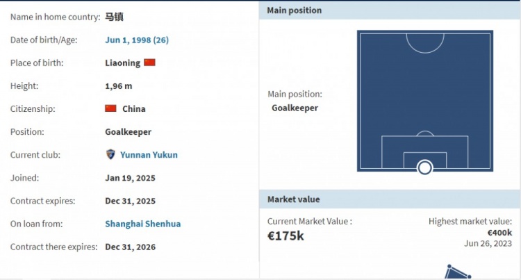 馬鎮(zhèn)曾效力于天津天海、上海申花,2024賽季代表申花出戰(zhàn)4場(chǎng),其中3次首發(fā)。