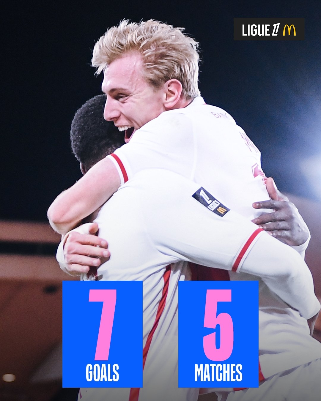 數(shù)據(jù)統(tǒng)計(jì)顯示,比雷斯在法甲生涯前5場(chǎng)比賽打進(jìn)7球,法甲歷史此前僅有2012年的伊布(巴黎)做到。