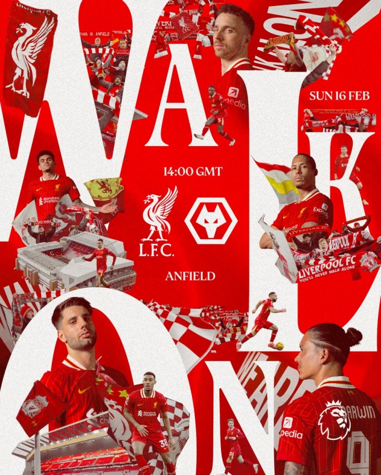 利物浦官方社媒發(fā)布了為此役制作的海報,范迪克、努涅斯、迪亞斯、赫拉芬貝赫、若塔、索博斯洛伊等球員出鏡。