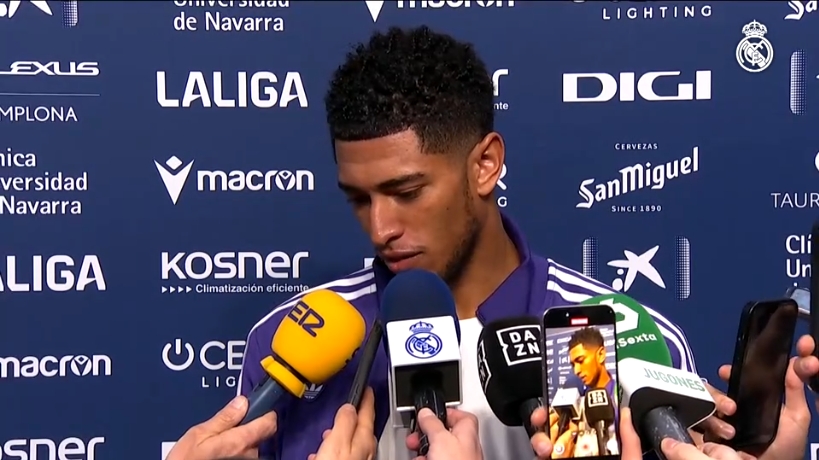2月16日訊 在奧薩蘇納和皇馬的比賽結(jié)束后,貝林厄姆向媒體澄清了比賽第39分鐘他被直接出示紅牌的事件過程。